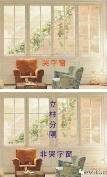 既然说到了哭字门格局,这里再介绍一下风水哭字窗格局。同一个房间、同一面墙上,开有两个窗才是哭字窗格局。也就是说,同一墙、不同房间的窗户不构成哭字窗。