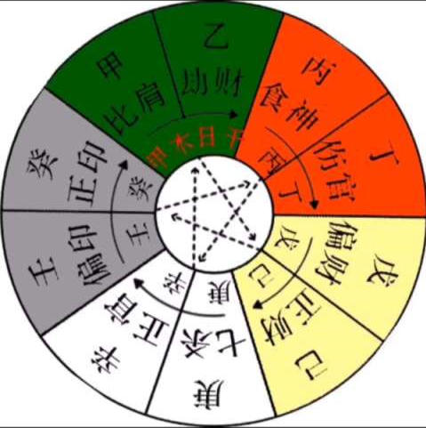 印:生我者为印,即文印。我为甲木,壬癸为水,水生木,所以壬癸为印。然后根据阴阳属性不同,细分为正印,偏印。